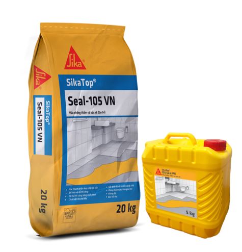 Sikatopseal 105, vữa chống thấm gốc xi măng polyme cải tiến, 2 thành phần. Sản phẩm được thi công lên bề mặt vữa và bê tông để ngăn sự thấm nước.